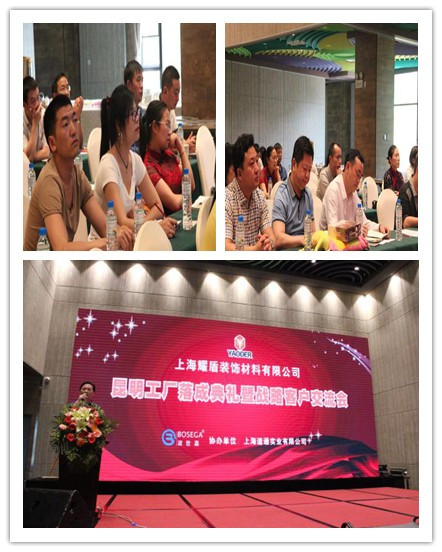 2016年5月8日,是激动人心的时刻。上海耀盾装饰材料有限公司昆明工厂落成典礼及战略客户交流会在美丽的春城春天温泉SPA会馆,在花香洋溢的花海中盛大召开。参加盛会的是来自全国各地的耀盾公司的金牌合作伙伴,优秀项目合作伙伴,战略合作伙伴及优秀合作伙伴,协会的马金秘书长等。
